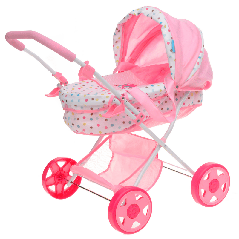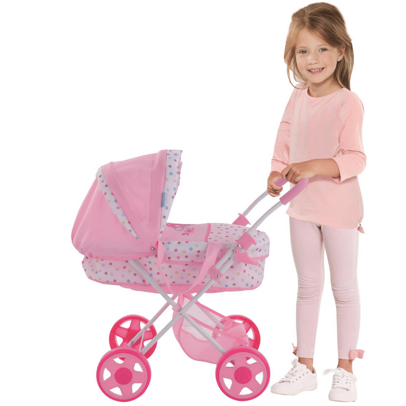 Nukenvaunuihin voi laittaa nuken makaamaan ja mennä kävelylle. Vaunuissa kuomu sekä tila tarvikkeille rattaiden alaosassa. Max 46 cm nukelle. Työntöaisan korkeus 55 cm.