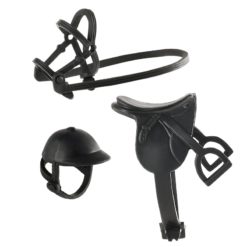 Ihana lisä nukkekoti leikkeihin. Nukkesetti, joka sisältää nuken, hevosen, ratsastuskypärän, satulan ja suitset. Nuken vaatteet voi vaihtaa ja sen nivelet liikkuvat. Pakkaus on muotoiltu taloksi, joten se on täydellinen leikkiympäristö nukelle ja hevoselle.