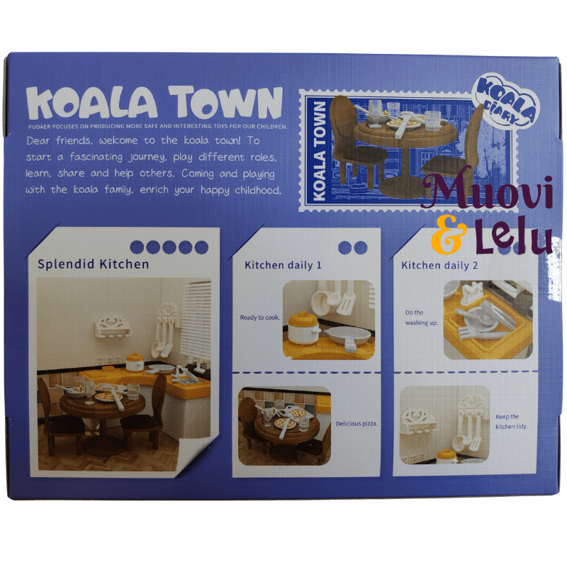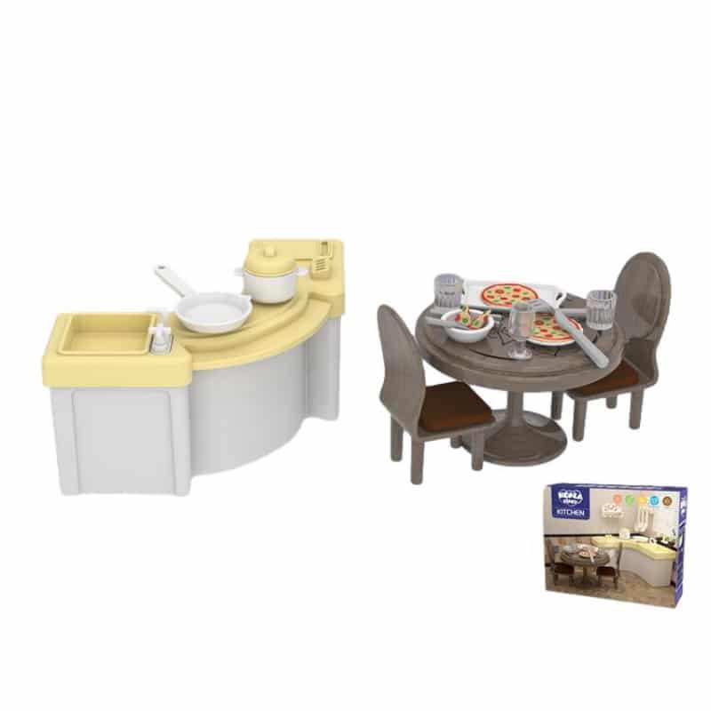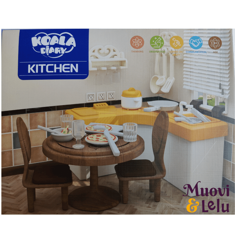Oletko valmis tekemään ruokaa, tiskaamaan astiat ja pitämään keittiön siistinä? Modernissa keittiössä nukkekotiin on leikkiruokaa, astiat, ruantekovälineitä ja keittiökalusteet. Kaikki tarvittava, mitä nukkekodin keittiön tarvitsee.