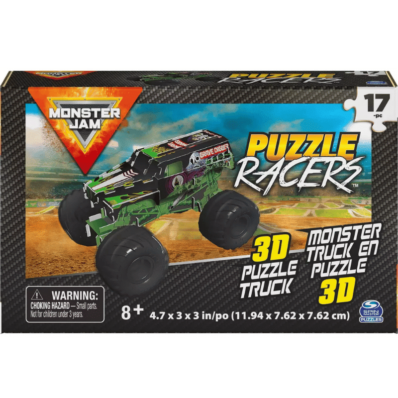 Voit tehdä oman Monster Jam -autosi tällä uudella 17-osaisella 3D-palapelillä. Grave Digger Puzzle Racers on täydellinen 1 tai 2 henkilön koottavaksi ja se sopii kaikille yli 8-vuotiaille. Voit myös rakentaa Megalodon Puzzle Racers 3D -palapelin kilpailemaan Grave Diggeriä vastaan!