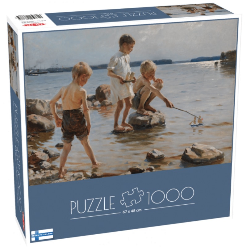 Leikkiviä poikia rannalla on Albert Edelfeltin maalaus vuodelta 1884. Nyt siitä on tehty 1000:n palan palapeli. Palapelin kokoaminen on hauskaa tekemistä ja ajanvietettä yhdessä perheen, ystävien tai itsensä kanssa. 1000:ssa palassa riittää haastetta kokeneemmallekin palapelin kokoajalla ja sen kokoaminen on erinomaista aivojumppaa. Palapelin kokoaminen kehittää hienomotorisia taitoja, keskittymiskykyä sekä käden- ja silmien koordinaatiota.