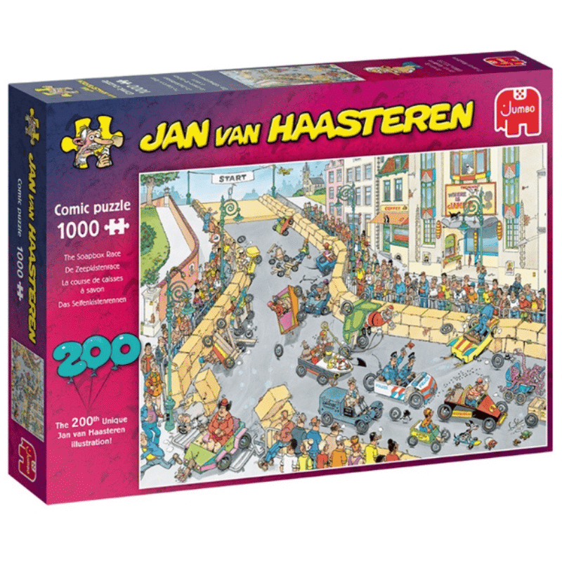 Jan van Haasteren on vuosikymmeniä luonut erittäin yksityiskohtaisia, värikkäitä ja ennen kaikkea humoristisia kuvia. Laatu ja innovatiivisuus leimaavat Jumbon tuotteita. Palapelit ovat ympäristöystävällistä kierrätyspahvia. Jokainen pala on ainutlaatuinen ja palat sopivat hyvin yhteen. Tuotteet valmistetaan Alankomaissa. Jumbon palapelissä on 1000 palaa ja valmiin palapelin koko on noin 68 x 49 cm.