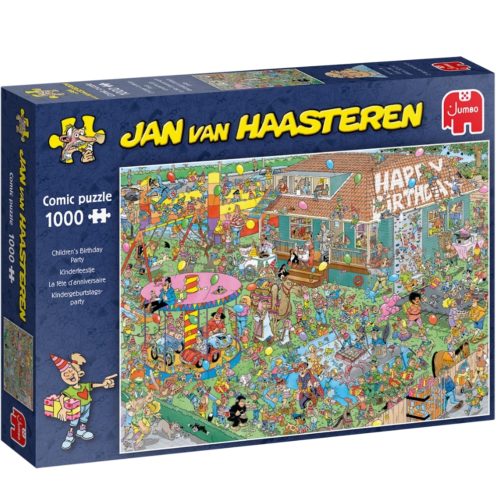 Palapeli 1000 palaa Comic synttärijuhlat – Jan van Haasteren on vuosikymmeniä luonut erittäin yksityiskohtaisia, värikkäitä ja ennen kaikkea humoristisia kuvia. Laadukkaassa 1000 palan palapelissa riittää paljon hauskaa tekemistä kotipäiviin ja sen kokoaminen on erinomaista aivojumppaa kokeneemmallekin palapelin tekijälle.