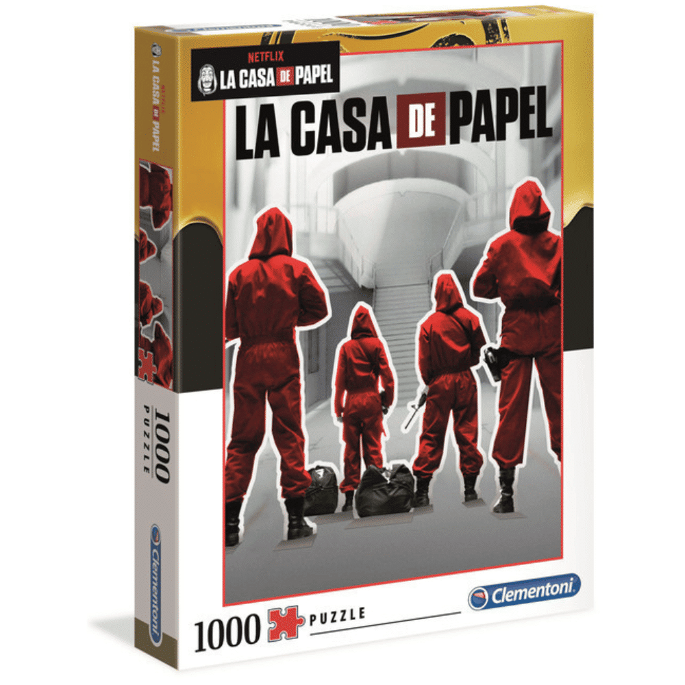 Netflix-sarjasta tuttu La Casa De Papel on nyt 1000 palan palapelinä! 1000 palassa riittää haastetta kokeneemmallekin palapelin kokoajalle, ja sen kokoaminen on erinomaista aivojumppaa. Palapelin kokoaminen kehittää hienomotorisia taitoja, keskittymiskykyä sekä käden ja silmien koordinaatiota. Se on hauskaa tekemistä kotipäiviin yksin tai yhdessä perheen ja ystävien kanssa. Italiassa valmistetut Clementonin palapelit ovat korkealaatuisia ja palat yhteensopivia keskenään.