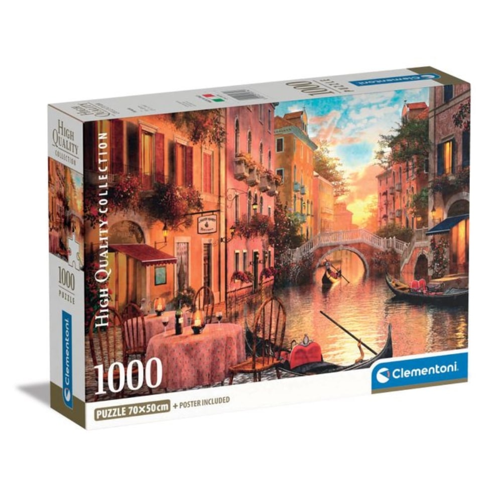 Palapeli 1000 palaa Venetsia Clementoni – 1000:ssa palassa riittää haastetta kokeneemmallekin palapelin kokoajalla ja sen kokoaminen on erinomaista aivojumppaa. Palapelin kokoaminen kehittää hienomotorisia taitoja, keskittymiskykyä sekä käden- ja silmien koordinaatiota.