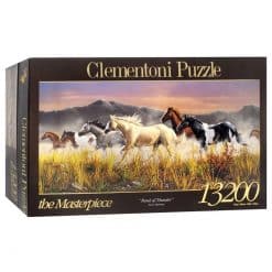 Clementoni-palapelit tunnetaan upeista kuvistaan ja täydellisesti toisiinsa sopivista paloista sekä korkealaatuisista materiaaleista. Tämän valtavan palapelin aiheena ja kuva on hevoset. Taustalla komeilee vuoret.