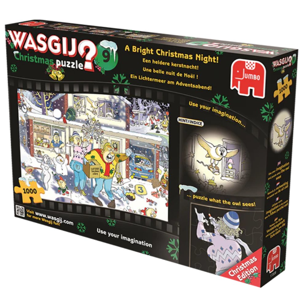 Wasgij 9 The Bright Christmas Night -palapeli tarjoaa 1000 palan haastetta ja iloa! Liity joukkoon ja koe mikä loppukuva todella on. 🎄