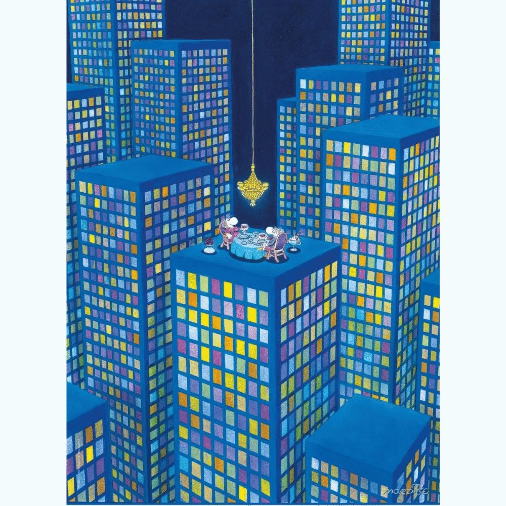 500 palassa riittää haastetta, ja kokoaminen on erinomaista aivojumppaa. Palapelin kokoaminen kehittää hienomotorisia taitoja, keskittymiskykyä sekä käden ja silmien koordinaatiota. Italiassa valmistettu Mordillo Dinner -palapeli on mahtava lahja taideharrastajalle.