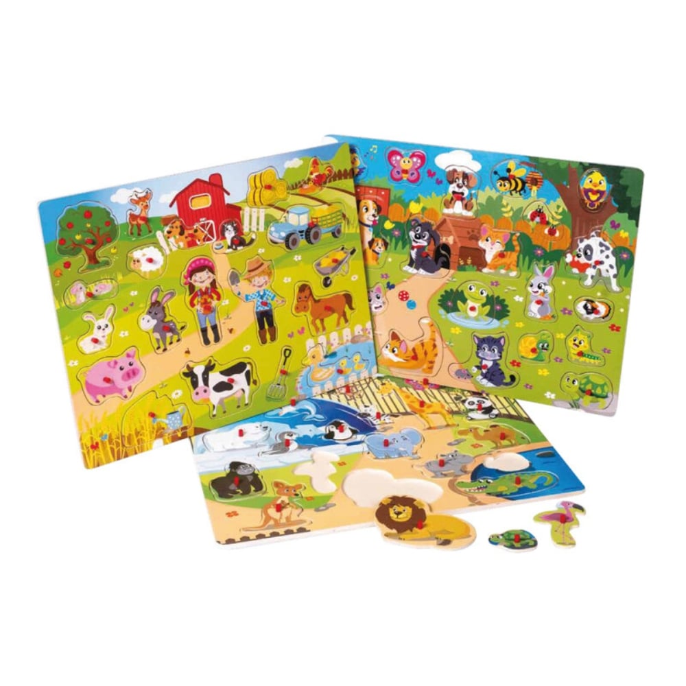 Koe hauskuuden ja oppimisen maailma näiden puisten palapelien parissa. Lapset rakastavat eläinten sovittamista oikeille paikoilleen. Tämä on ihanteellinen pienille ajattelijoille ja tutkimusmatkailijoille!