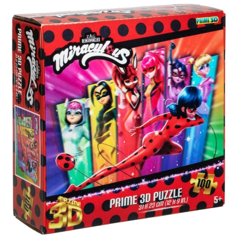 Upea Miraculous-aiheinen palapeli, jonka 3D-tehoste luo kuvaan syvyyttä ja liikettä. Palapelin kuvassa on Ladybug sekä Cat Noir Miraculous-sarjasta. Palapelissä on 100 palaa, ja sen koko valmiina on 31 x 23 cm.