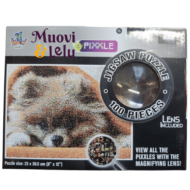Tässäpä vasta upea uutuus palapeli! Kun olet tehnyt pikseli palapelin valmiiksi, katso tarkemmin sitä suurennuslasilla. Valmis palapeli on pikselimäinen. Mukana tulevalla suurennuslasilla näet paljon erilaisia pieniä koiran kuvia. Vau, kuinka siistiä! Palapelissä on 100 palaa ja sen on 23 x 30,5 cm kokoinen valmiina.