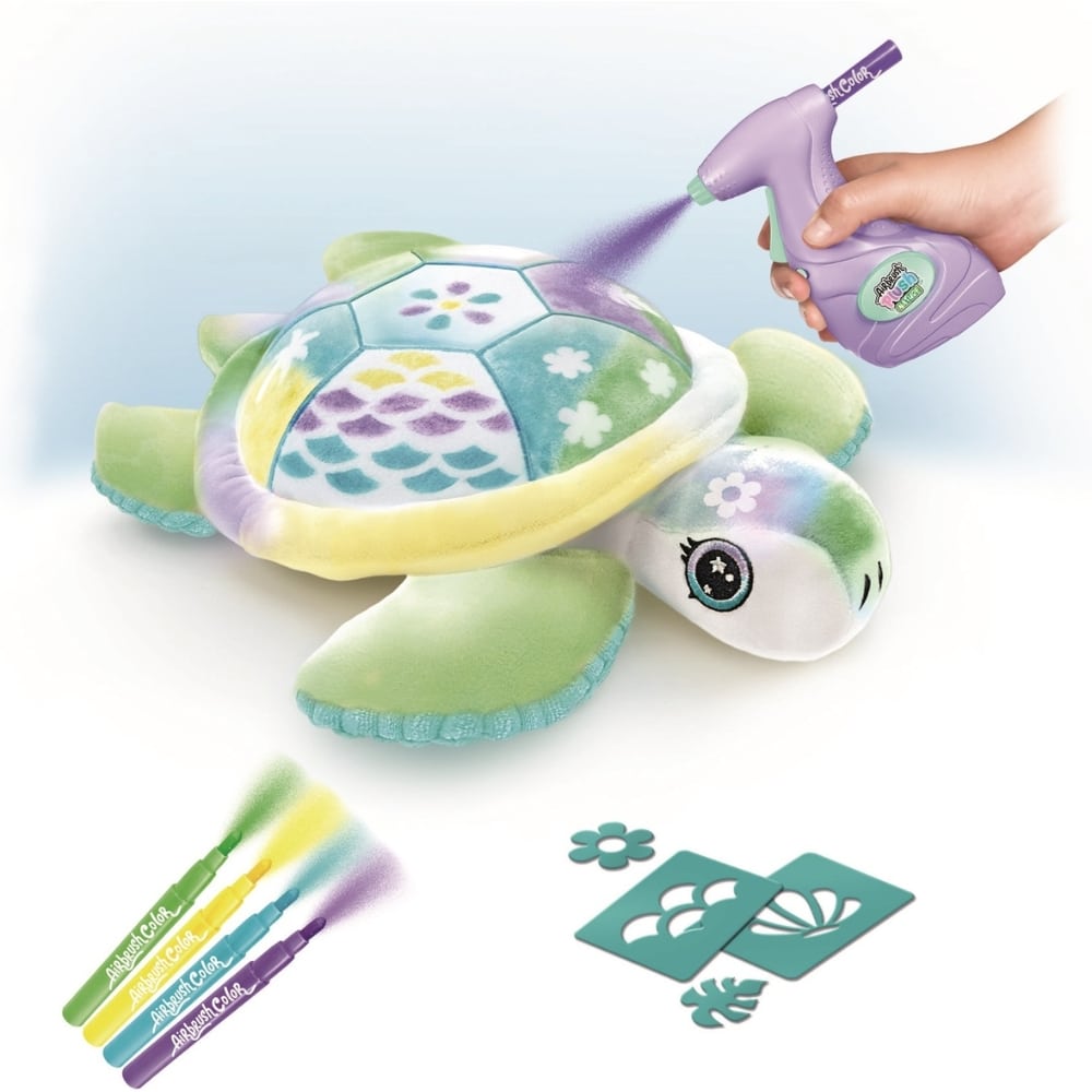 Airbrush Plush Nature -kilpikonna on iloinen leikkisä kaveri, joka ihastuttaa pehmeällä olemuksellaan. Päästä mielikuvituksesi valloilleen ja luo pehmohahmollesi uusi tyyli mukana tulevilla Airbrush-tusseilla. Voit käyttää mukana tulevia sabluunoita apunasi tai koristella pehmolelun mielikuvitusta käyttäen. Pian kuivumisen jälkeen pehmohahmo on valmis leikkimään. Voit koristella pehmon aina uudelleen ja uudelleen, sillä sen voi pestä.