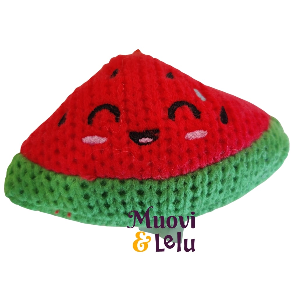 Pirteä Ami Amis pehmolelu vesimeloni on neulottu todella pehmeä pehmo, jossa on ripustuslenkki. Pehmolelulla on kirjailtuja yksityiskohtia sekä oma persoonallisuutensa, tarinansa ja identiteettinsä. Kerää kaikki erilaiset Ami Amis pehmot! Korkeus: noin 8 cm. Ikäsuositus: 3+ vuotta.