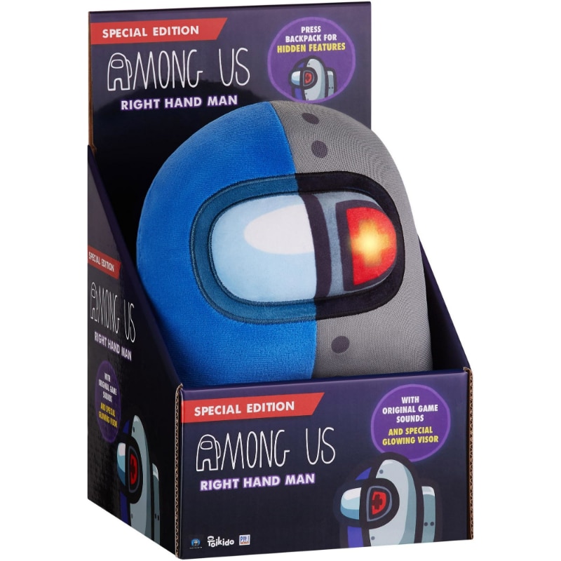 Tällä Right Hand Man Among Us pehmolelulla on ”hehkuva silmä” ja äänitehosteita Among Us pelistä. Pehmolelu on noin 25 cm korkea. Among Us pehmoleluja on saatava eri koissa ja väreissä. Kerää kaikki!