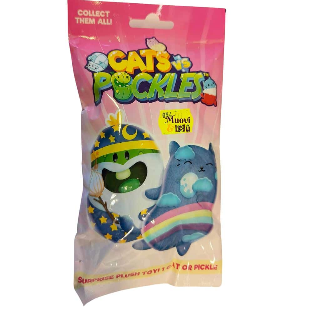 Kissat vastaan suolakurkut -sarjan 10 cm korkuisia papupehmoja yllätyksellisissä blindbageissa. Pehmoja on useita eri hahmoja, ja toimitettavan tuotteen (1 kpl) väri ja kuosi vaihtelee saatavuuden mukaan. Tervetuloa Cats vs Pickles -maailmaan, jossa rakastetut mutta väärinymmärretyt suolakurkut jahtaavat kissoja.
