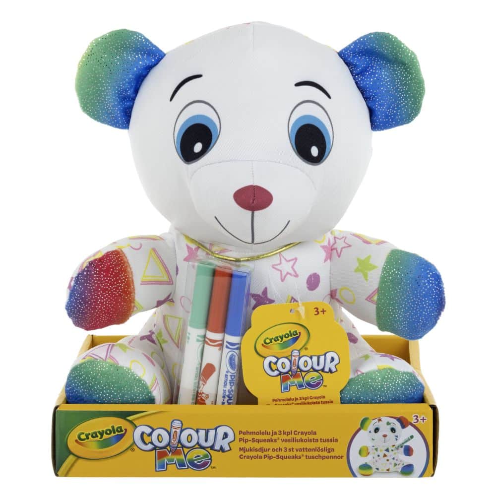 - Pakkaus sisältää nallepehmon (23 cm) ja kolme Crayola-tussia.