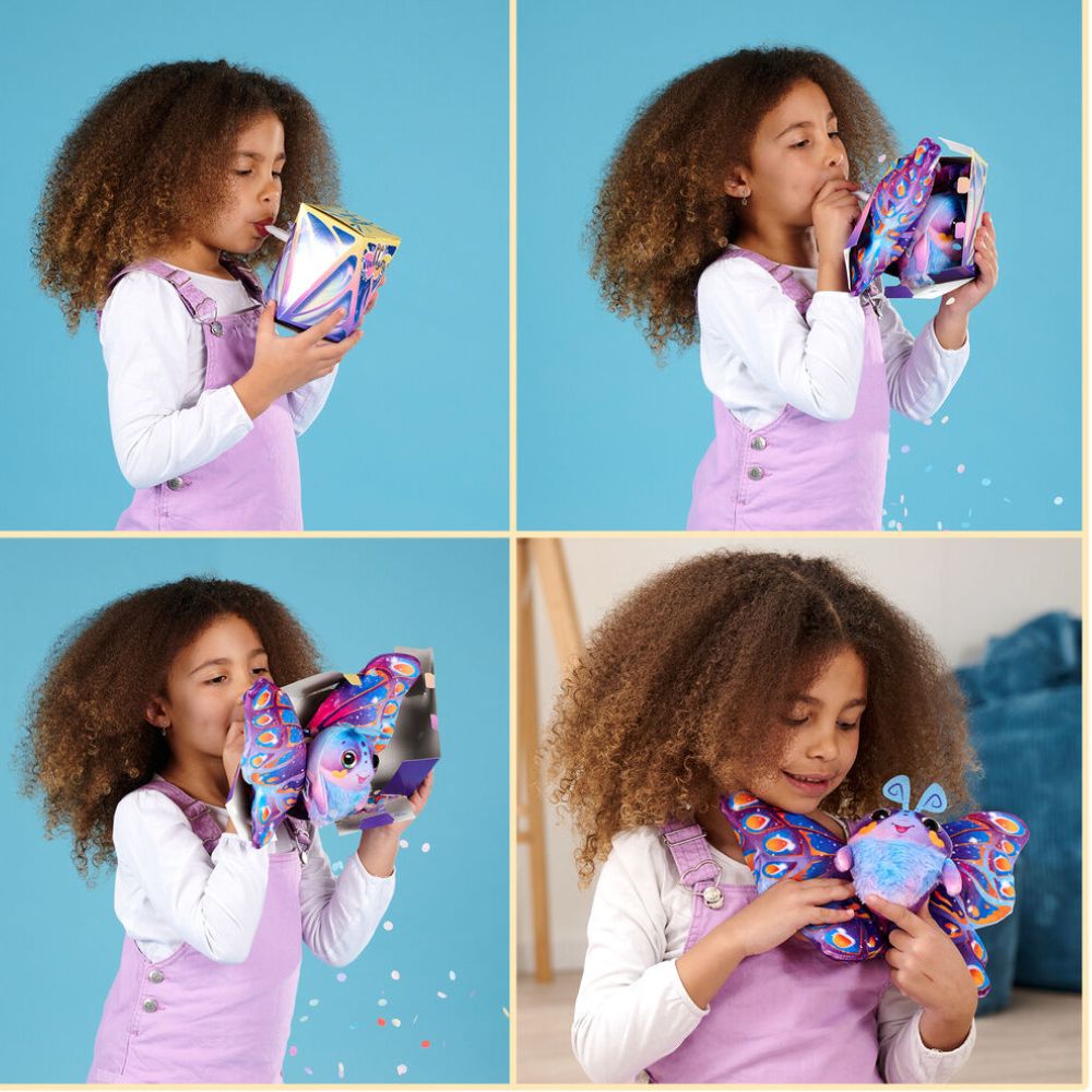 Puhalla ilmaa ja katso, kuinka pehmoinen perhonen levittää säihkyvät siipensä.