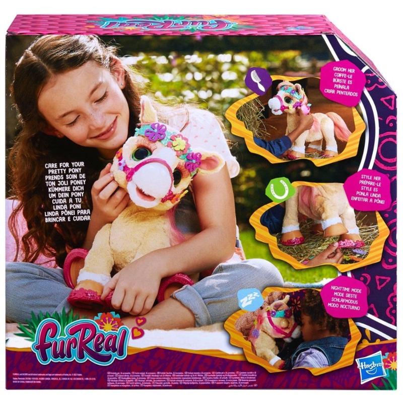 Ihastuttavalla Furreal stailattava Cinnamon ponista tulee yli 80 äänitoimintoa ja reagointia. Harjaa pehmoleluponilla harjaa, jossa on upeaa pinkkiä tehosteväriä. Ihastuttava poni vastaa kun syötät sitä, silität sen poskia tai selkää ja kun pussaat sen nenää. Interaktiivinen poni ilmaisee tunteitaan, räpsyttää pinkkejä silmiään, liikuttaa korviaan, päätään ja kaulaansa. Pidä hyvää huolta somasta ponistasi. Stailaa leikkiponi mukana tulevilla kukkakoristeilla ja kukkahevosenkengillä ja nuku yöllä sen kanssa. Tämän ihastuttavan interaktiivisen ponin kanssa viihdyt tuntikausia ja siitä tulee paras ystäväsi!