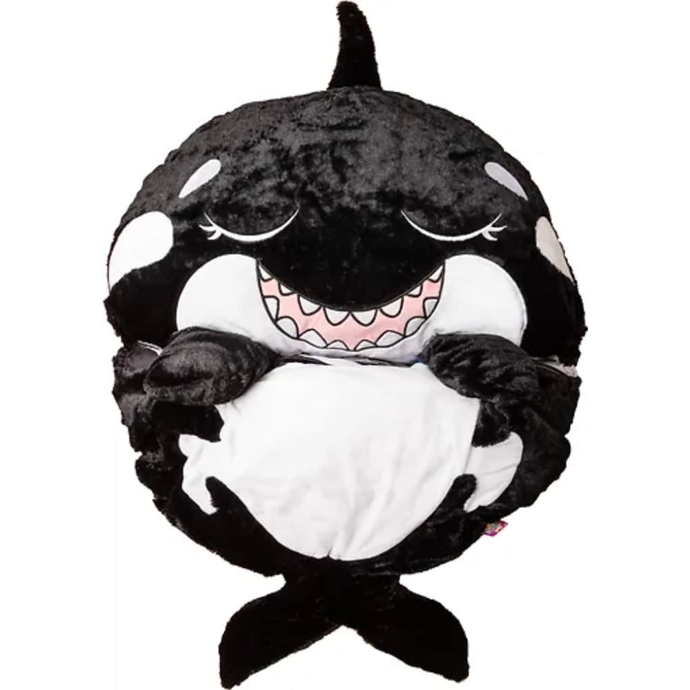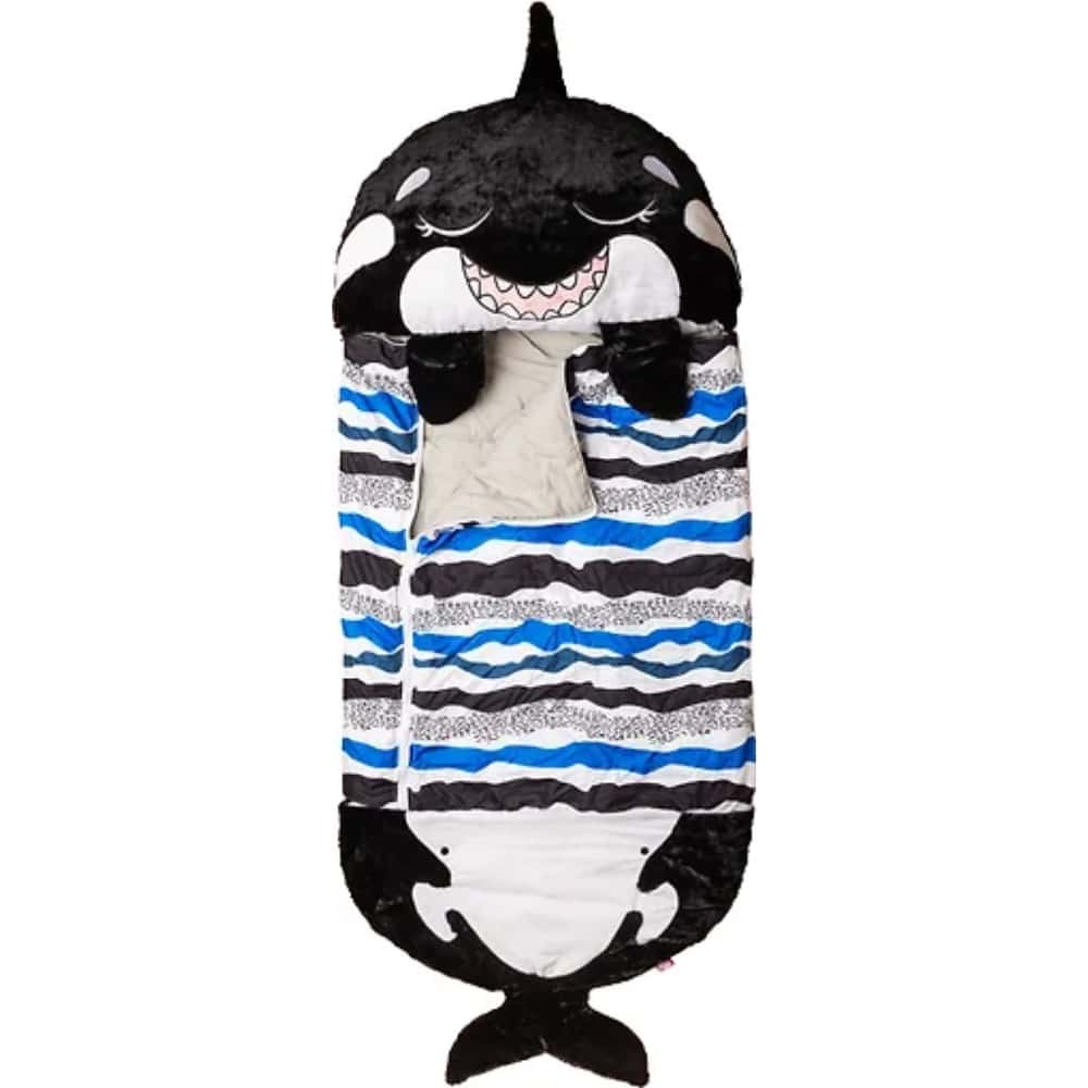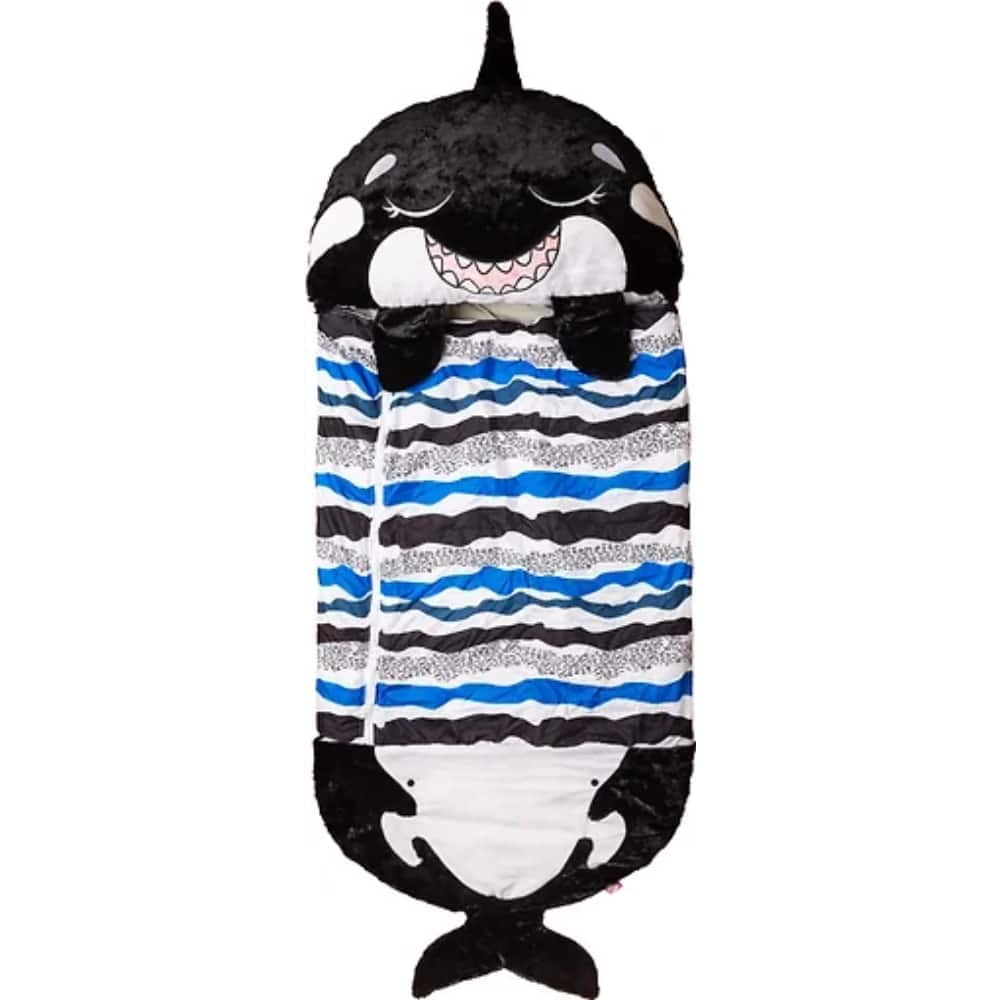 Happy Nappers ei ole kuten mikä tahansa pörröinen pehmohahmo, vaan se toimii avattuna myös makuupussina tai peittona! Ihanan pehmeä hahmo on niin rutistettavan suloinen, ettei sitä pysty kukaan vastustamaan. Suloinen miekkavalaspehmotyyny avautuu mukavaksi, 167 cm pitkäksi makuupussiksi. Makuupussi sopii noin 5-vuotiaille ja sitä vanhemmille lapsille.