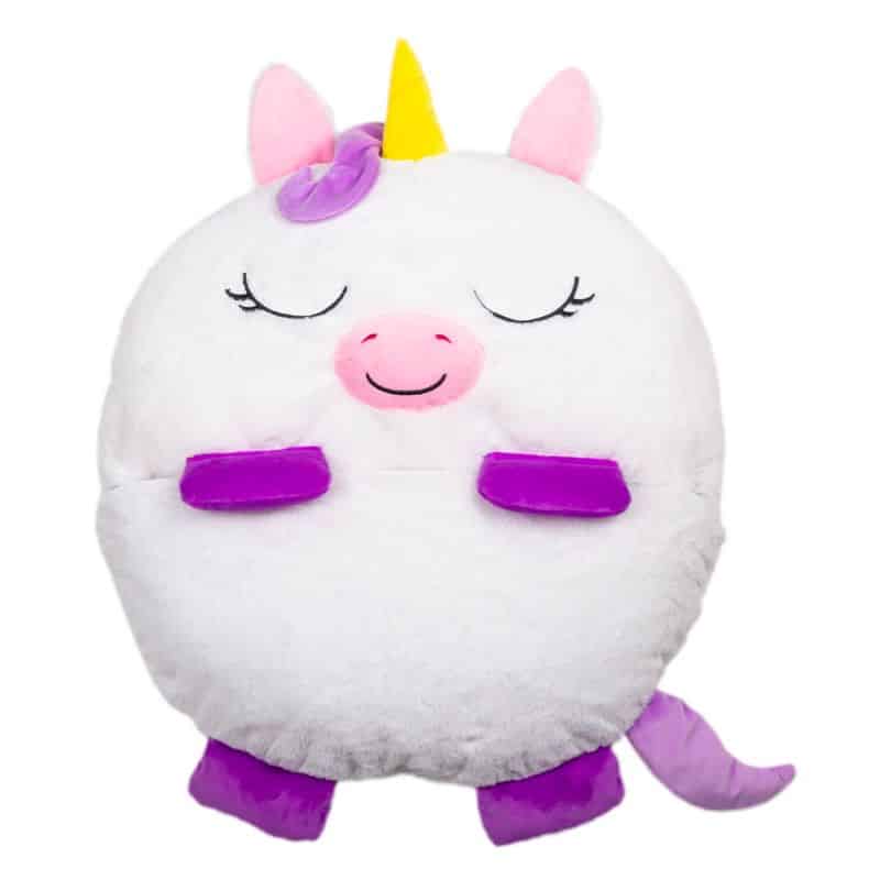 Erilaiset tyynyt ja pehmot ovat rakkaita ja suosittuja. Tämä ihastuttava eläintyyny kätkee sisälleen makuupussin. Avaa vain leikkityyny, jolloin se muuttuu ihanan hauskaksi makuupussiksi – ja kun makuupussia ei enää tarvita, sen voi kätkeä takaisin tyynyn sisään. Helppo säilyttää, näppärä ottaa mukaan!