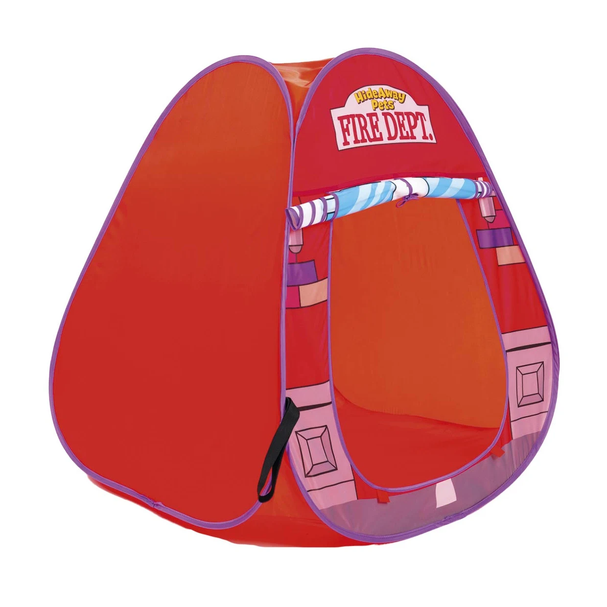 Suloinen ja samettisen pehmeä palokoira-eläinpehmotyyny, jonka sisältä paljastuu hauska pop-up -teltta. Valkoisella koiralla on suuret silmät, lempeä hymy, mustia pilkkuja ja päässä palomiehen pehmeä kypärä. Paloasema-aiheisen pop-up -teltan pohjan koko on 66 x 66 cm ja sen korkeus on 82 cm. Pehmotyynyksi, kaveriksi, monipuolisiin leikkeihin!