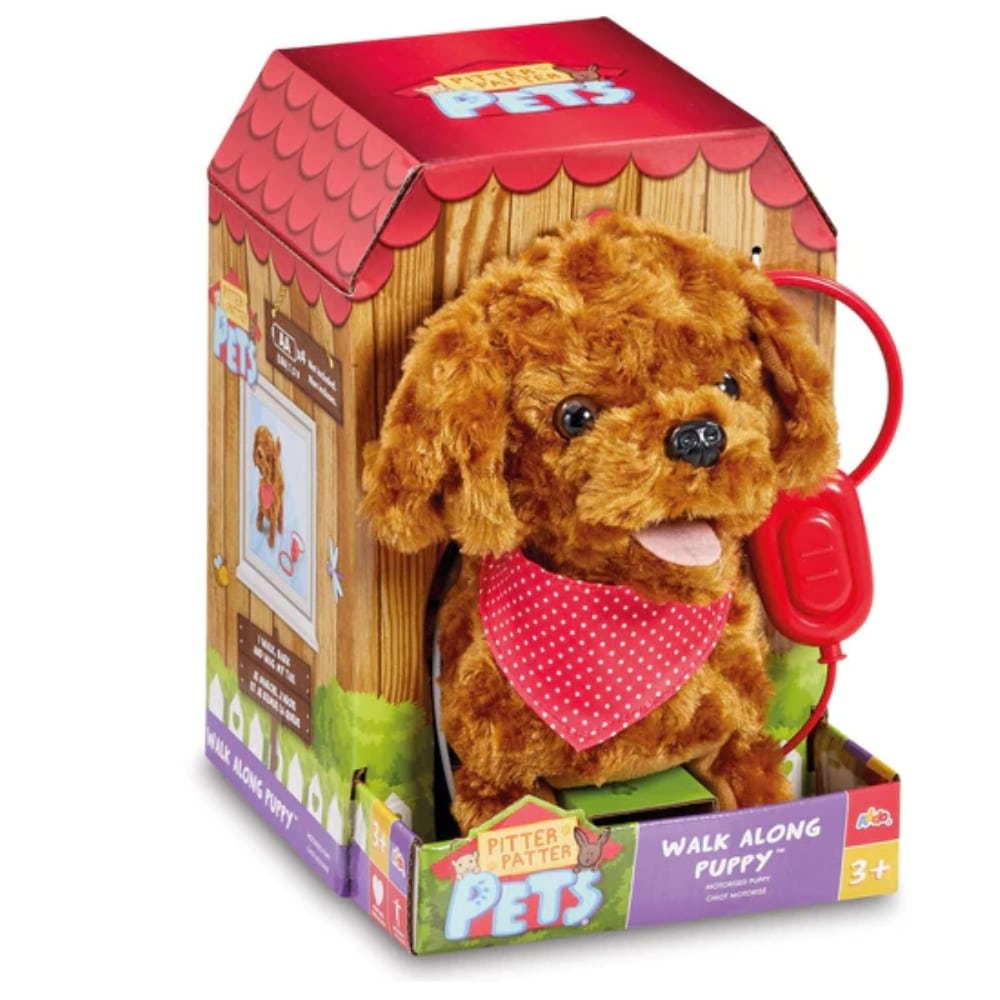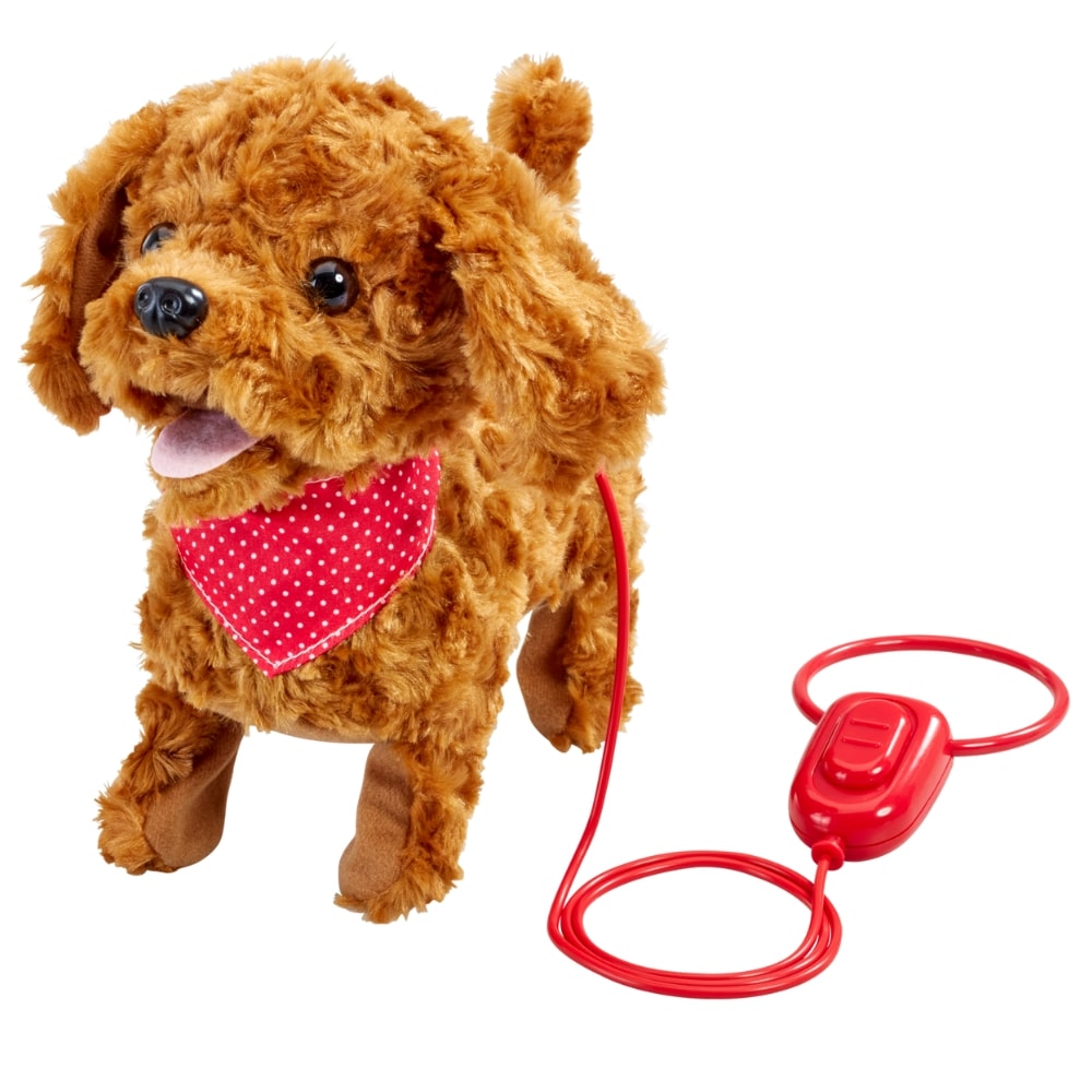 Koira pehmolelu Happy Pets talutettava ruskea on kuin oikea lemmikki. Se liikkuu eteenpäin häntä heiluen ja haukkuen nappia painamalla. Koiralla on kaulassaan punainen täplikäs huivi. Pehmoisella koiralelulla leikkiminen opettaa lapselle muun muassa empatiakykyä ja laittaa mielikuvituksen liikkeelle. Tuotteen paristotarve: 4 kpl AA-paristoja. Paristot eivät sisälly pakkaukseen. Osta erikseen! Ikäsuositus: yli 3-vuotiaille. Koiran mitat: korkeus noin 22 cm ja pituus noin 25 cm.