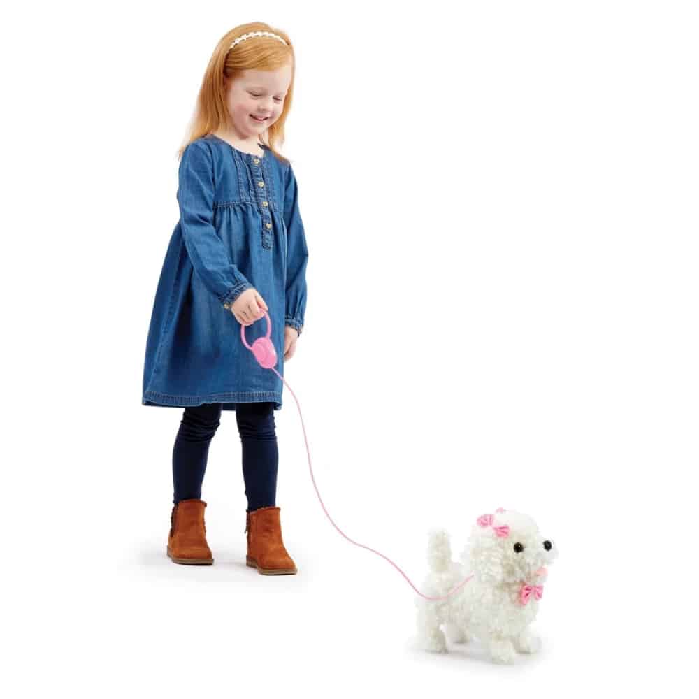 Haaveileeko lapsesi koirasta? Koira pehmolelu Happy Pets on kuin oikea lemmikki, mutta pääset sen kanssa helpommalla kuin oikean kanssa. Vie koira kävelylle ja paina hihnan painiketta, niin koira kulkee eteenpäin häntä heiluen ja haukkuen. Koiralla on korvissaan ja kaulassa suloiset pinkit rusetit. Pehmoisella koiralelulla leikkiminen opettaa lapselle muun muassa empatiakykyä ja laittaa mielikuvituksen liikkeelle.