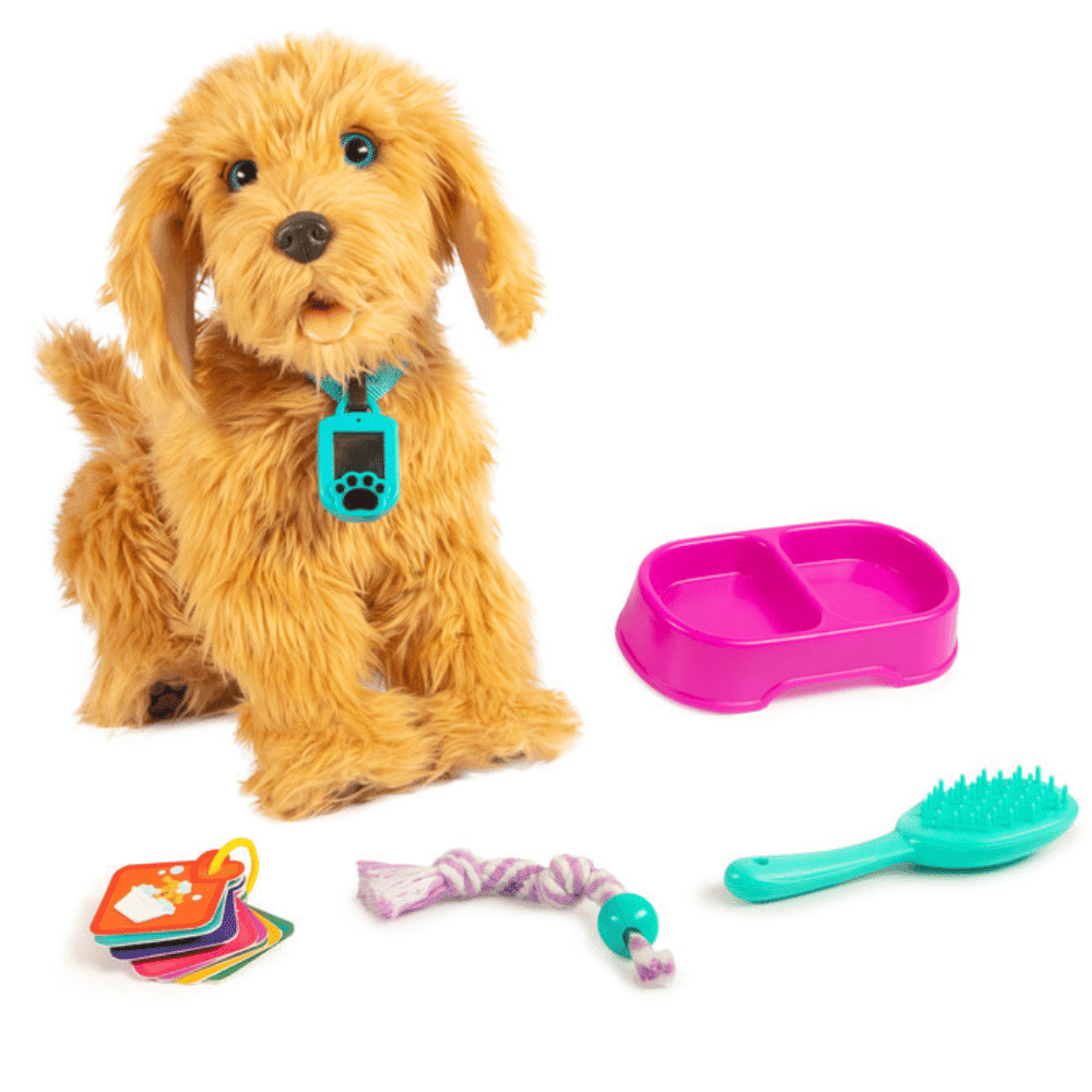 - Mukana tulee: interaktiivinen koira, älykaulapannan, 20 hoitokorttia, leikkinaru, harja, ruokakuppi ja ohjeet.