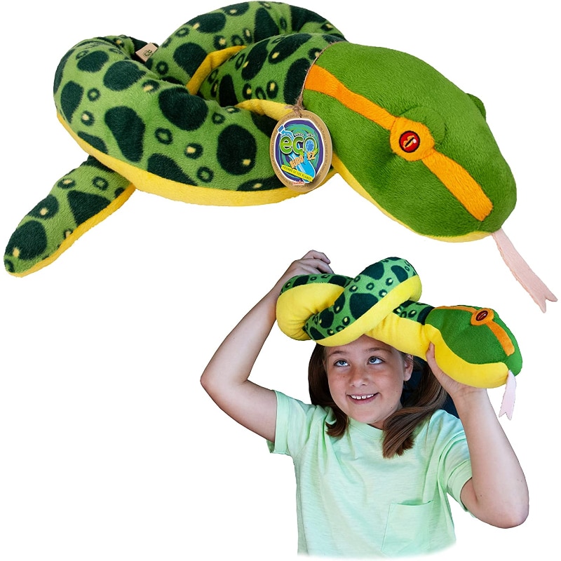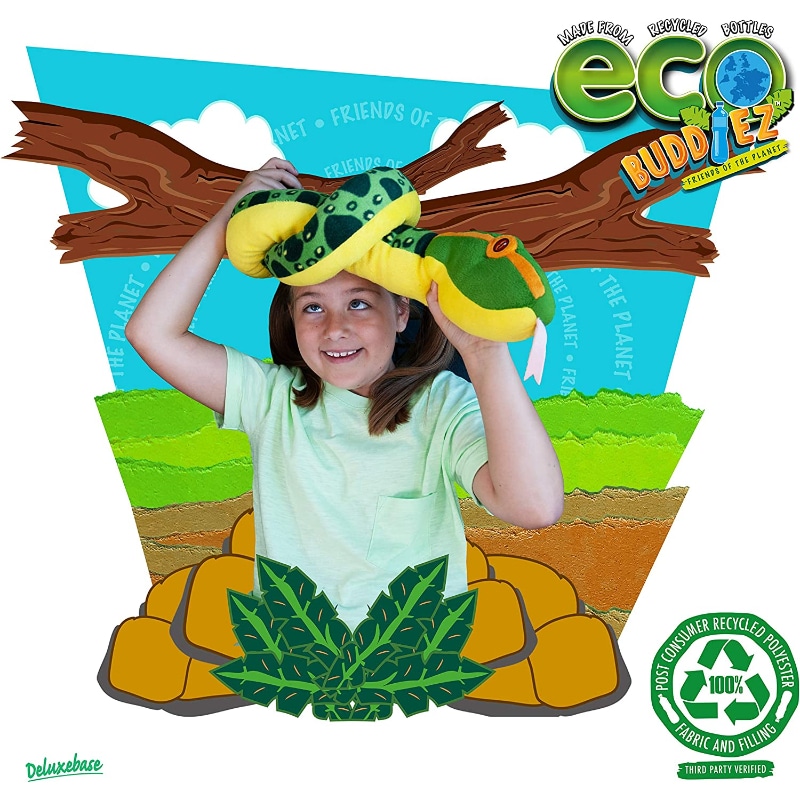 Tämä todella pehmeän tuntuinen, värikäs ja noin 143 cm pitkä käärme on valmistettu 100 %:sti kierrätetystä muovista. Ostamalla tämän lelun varjelet luontoa ja teet eco ystävällisen teon. Käärmepehmolelu on tehty 20 kierrätetystä vesipullosta. Super pehmeässä käärmepehmossa on ommellut silmät ja värikkäitä yksityiskohtia. Deluxebase on erikoistunut suunnittelemaan hauskoja ja opettavaisia leluja ja lahjoja lapsille Isossa-Britanniassa, Yhdysvalloissa ja Euroopassa yli 25 vuoden ajan.