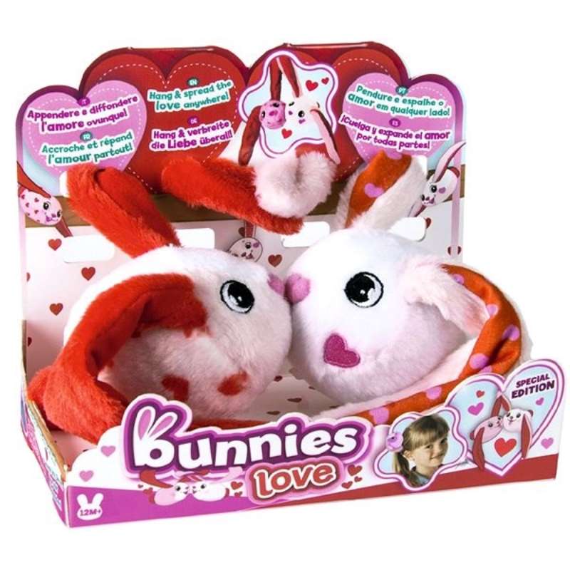 Suloinen pupu, jolla on oikein pitkät korvat joiden päässä on magneetit. Ihanan pehmoiset puput, joilla on sydänkuosia.