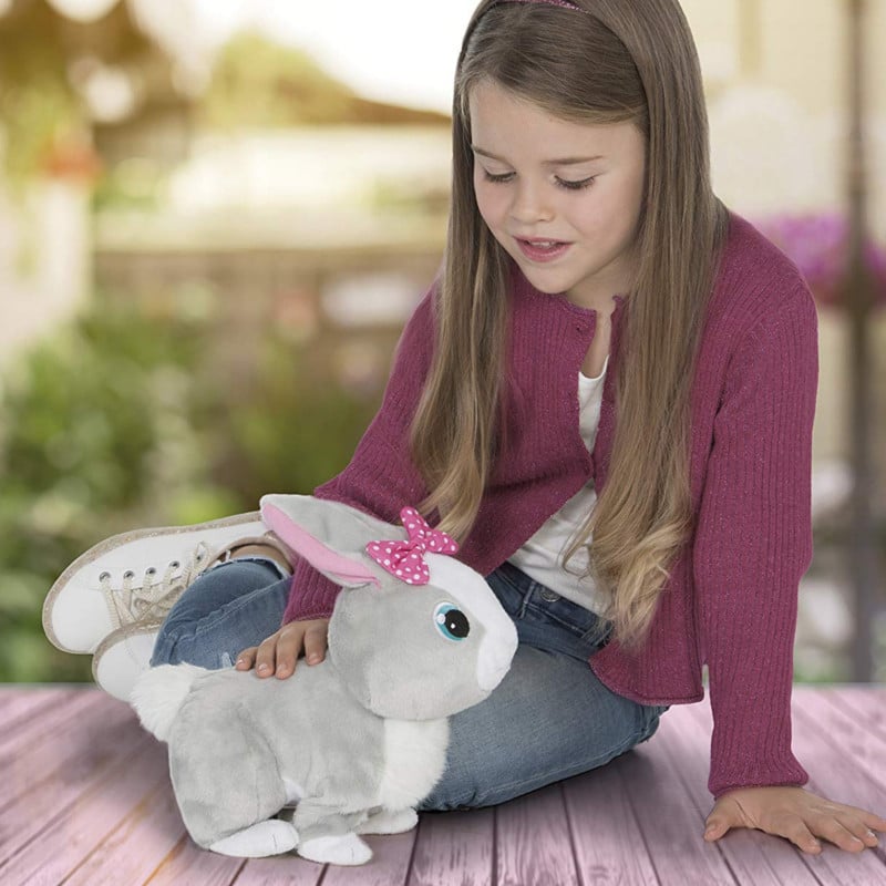 Betsy on kuin oikea pupu! Se pomppii luoksesi kun kutsut sitä. Betsy pitää silityksistä! Betsystä tulee sinulle hyvä ystävä, joka tykkää olla sylissä halittavana. Uudella Betsyllä on lila rusetti päässä.