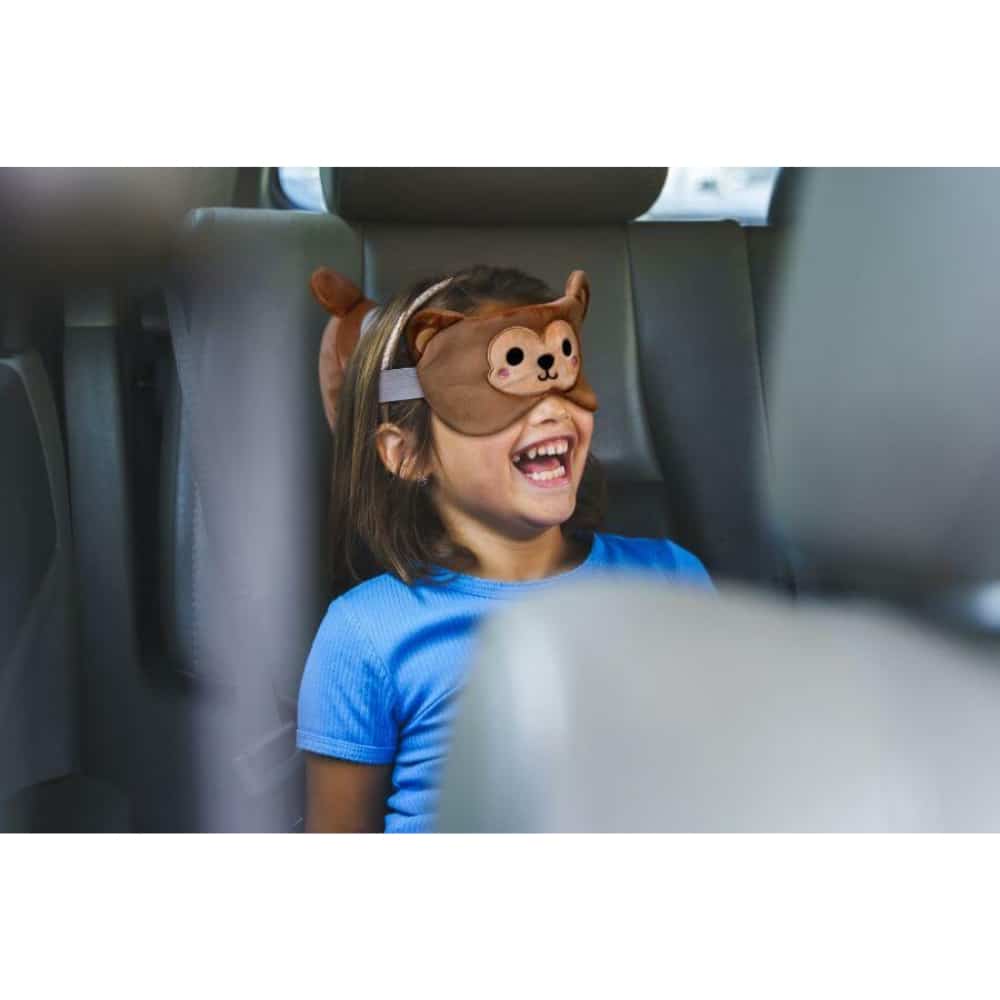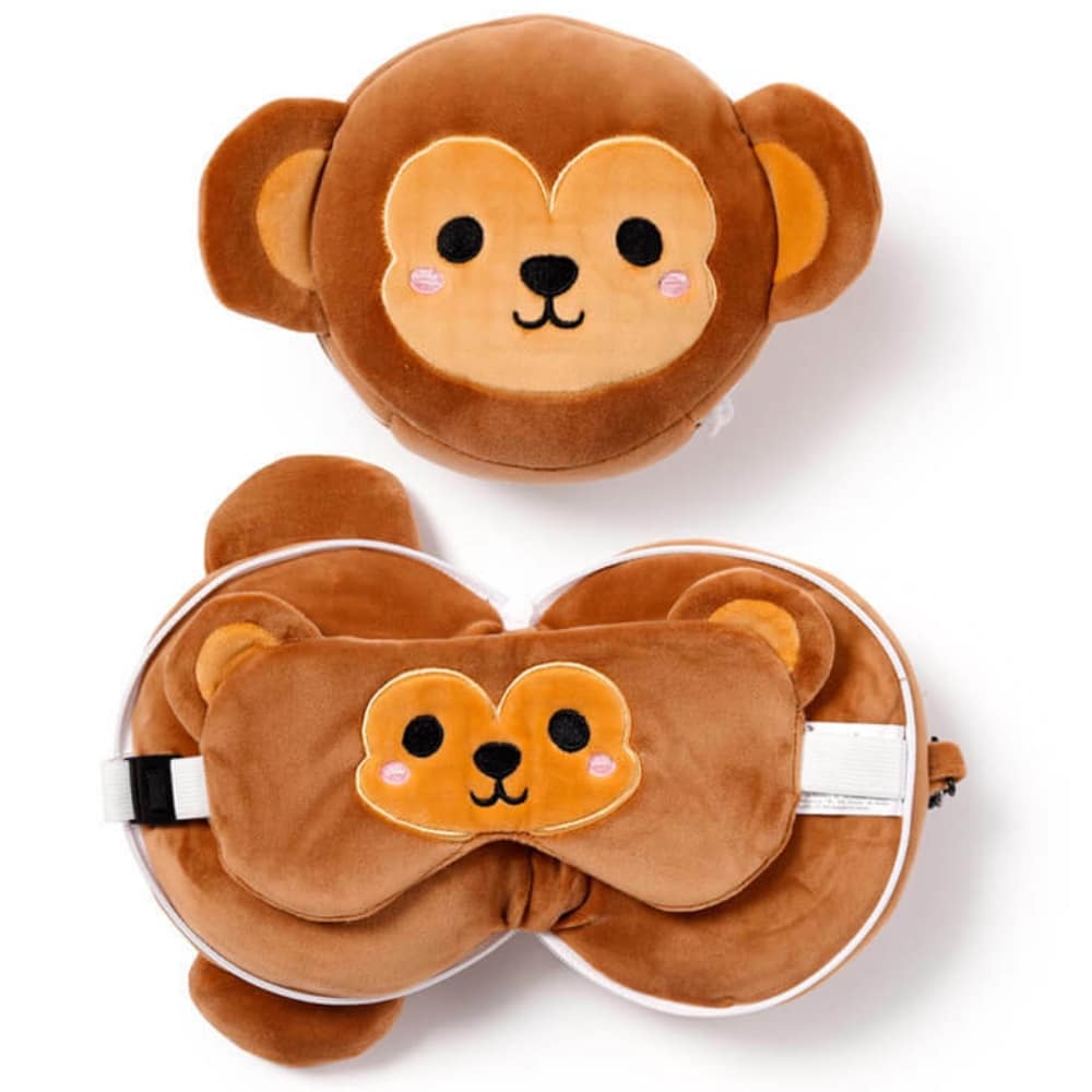 Relaxeazzz Matkapehmo apina on pehmolelu, jonka sisälle kätkeytyy kekseliäs matkatyynyn ja silmälappujen yhdistelmä.