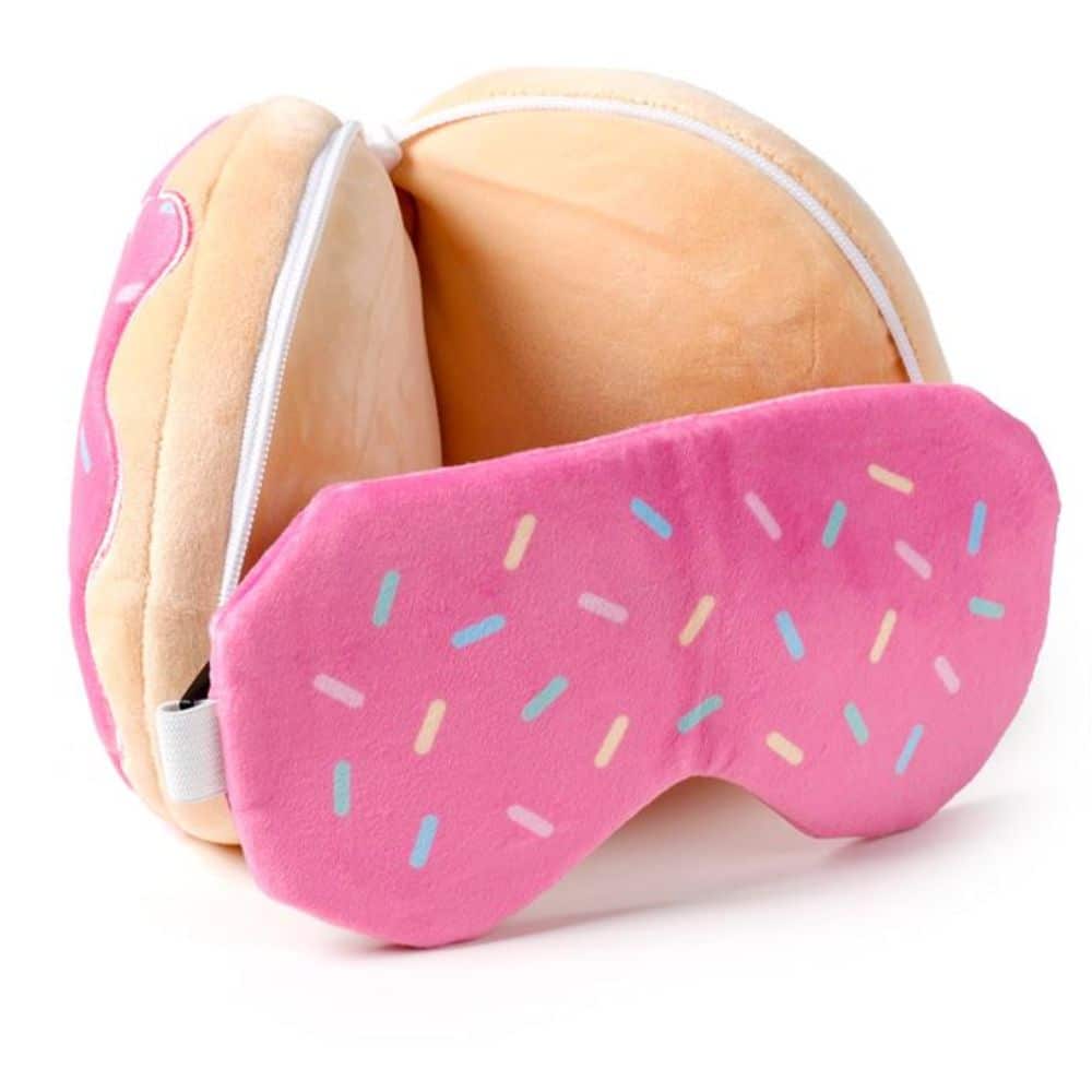 Relaxeazzz matkapehmo donitsi on rauhoittava pehmolelu matkatyynyllä ja silmälapuilla. Pehmolelun sisälle kätkeytyy kekseliäs matkatyynyn ja unimaskin yhdistelmä. Rauhoittumispehmo on mitä mainioin unikaveri ja matkakumppani!