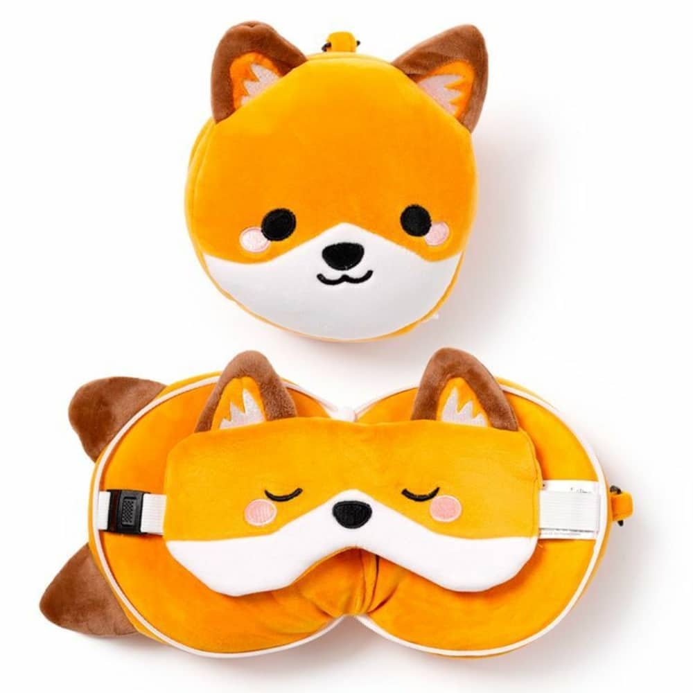 Matkapehmo kettu on pehmolelu, jonka sisälle kätkeytyy kekseliäs matkatyynyn ja silmälappujen yhdistelmä.