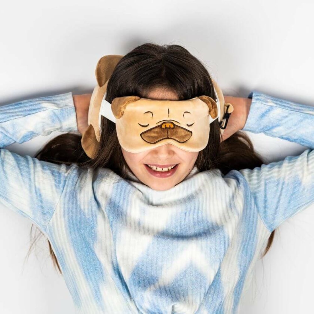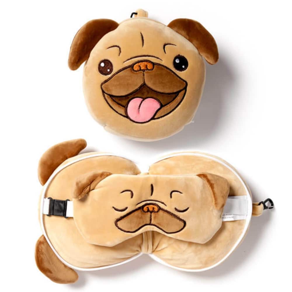 Relaxeazzz Matkapehmo mopsi on pehmolelu, jonka sisälle kätkeytyy kekseliäs matkatyynyn ja silmälappujen yhdistelmä.