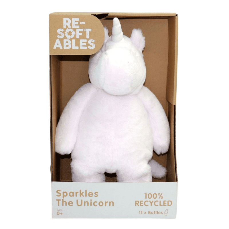 Ihastuttava, pehmeä ja söötti vaaleanpunainen Sparkles yksisarvinen pehmolelu soveltuu kaiken ikäsille lapsille! Pehmolelu on tehty 100% kierrätysmateriaalista, 11 muovipullosta, vaikkei uskoisi.