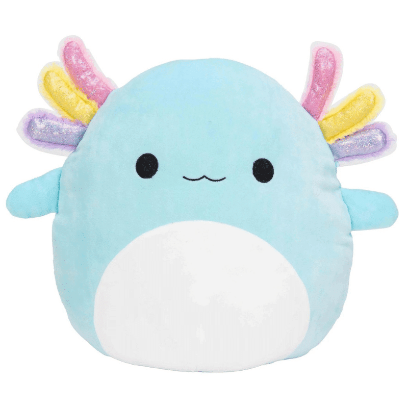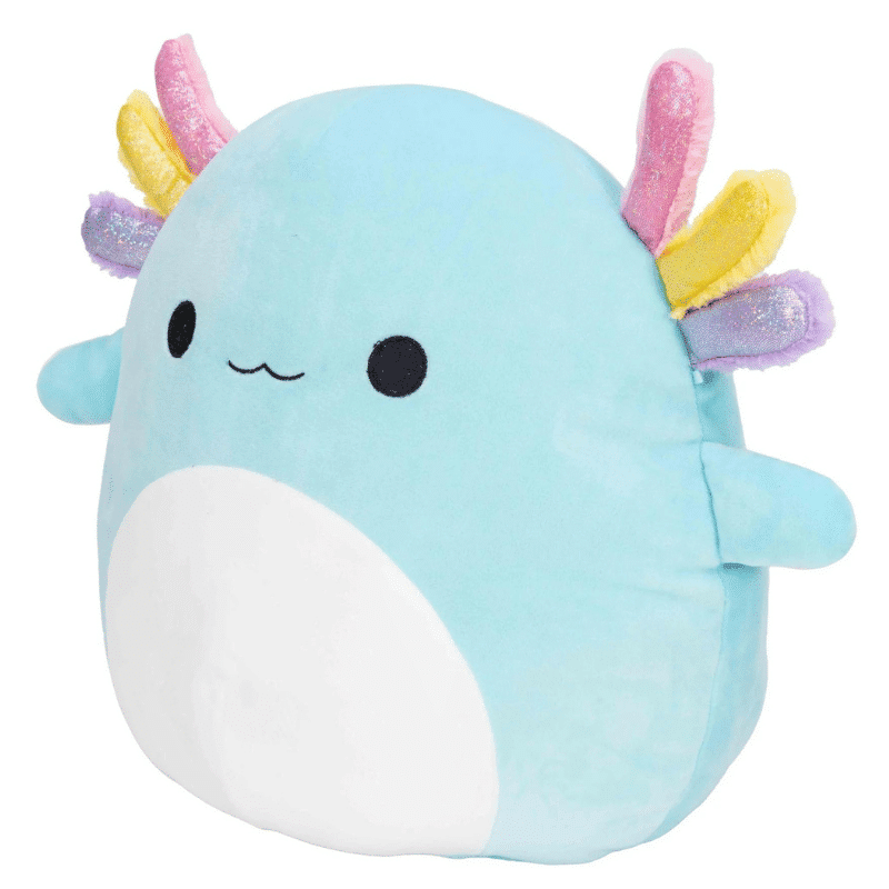 Lisää Axolotl pehmolelu joukkoosi! Tämä 30 cm Squishmallow-pehmolelu on sininen Axolotl nimeltään Irina.
