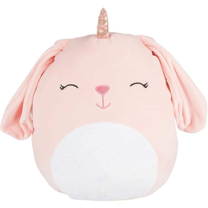 Pehmeä, suloinen ja turvallinen Squishmallows-pehmolelu soveltuu kaiken ikäsille lapsille vauvasta lähtien! Pehmolelu on herttaisen värinen ja Squishmallows pupulla on roikkuvat pitkät korvat ja yksisarvinen. Pehmolelua voi käyttää myös isona tyynynä. Ihana lahjaidea!