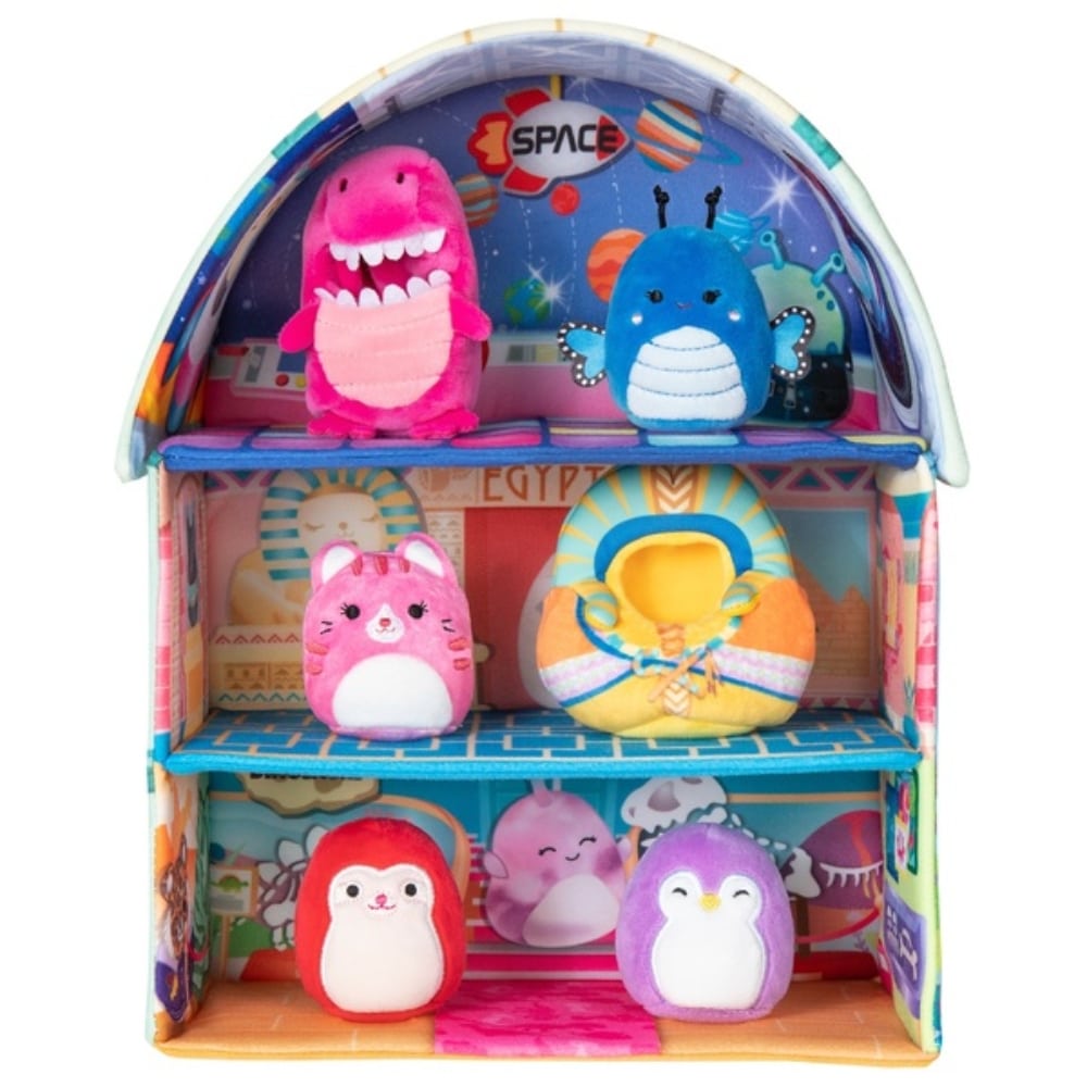 Squishville Squishmallows museo & 4 pehmolelua – Vietä päivä museossa! Liity elämäsi seikkailuun Squishville museo & 4 pehmolelua leikkisetillä, joka sisältää kolme kerrosta kiehtovia löytöjä. Muista pakata laukkusi! Tutustu dinosaurusnäyttelyyn ensimmäisessä kerroksessa ja muuta Elle dinosaurukseksi pukemalla se dinoasuun.