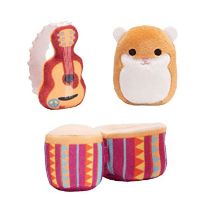 Tervetuloa Squishvilleen! Kutsu ystäväsi koolle ja valmistaudu soittamaan Squishville-pehmolelun kanssa. Pakkaus sisältää noin 5 cm korkuisen Squishville Squishmallows-pehmolelun, pehmeän kitaran ja rummut. Kaikenikäisille sopivat ihastuttavat Squishmallows-pehmot hurmaavat ihmisiä ympäri maailmaa. Pehmot voit ottaa mukaan leikkeihin, unikaveriksi tai vaikkapa matkoille pienten taskuun menevän koon vuoksi. Squishville-pehmolelumaailman pehmoleluissa on superpehmeä täyte, minkä takia pehmoleluja on ihana rutistella kädessä.