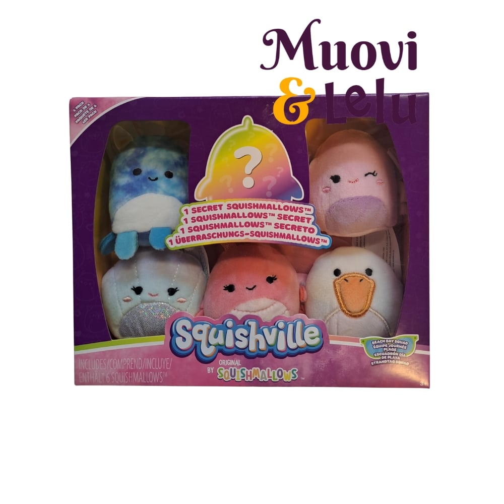 Squishville Squishmallows pehmolelut 6 kpl. Tässä pakkauksessa on mukana yllätys Squishmallows! Beach Day Squad 6 -pakkauksen mukana tulee joitain suosikki hahmojasi. Kaikki pehmot ovat valmistettu erittäin pehmeästä täytteestä ja ne ovat täynnä persoonallisuutta. Kerää tämä setti ja näiden Squishvillen 6-pakkausten kaikki neljä tyyliä!