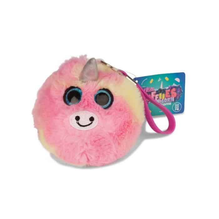 Pehmeä, hitaasti palautuva squishie pehmolelu, jossa on silikoninen ripustuslenkki, joten voit laittaa sen esim. reppuun roikkumaan. Pehmot ovat pastellinsävyisiä, värikkäitä palloja, joilla on kimaltelevat silmät ja yksisarvisen sarvi. Koko n. 12 cm.