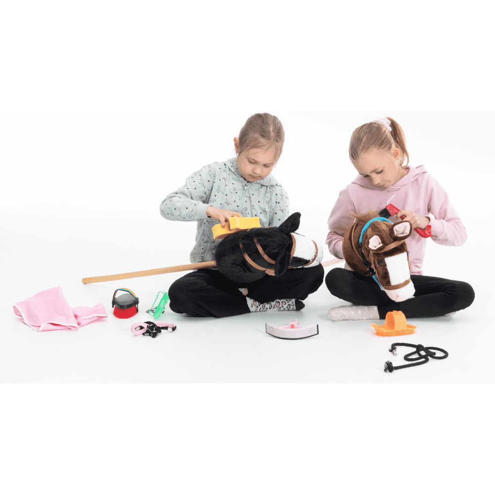 Keppihevosen hoitotarvikkeet 7 osaa sisältää kaiken, mitä tarvitset keppihevosesi hoitamiseen. Mukana tulee muun muassa erilaisia harjoja ja pesusieni. Ikäsuositus: 3+ vuotta.