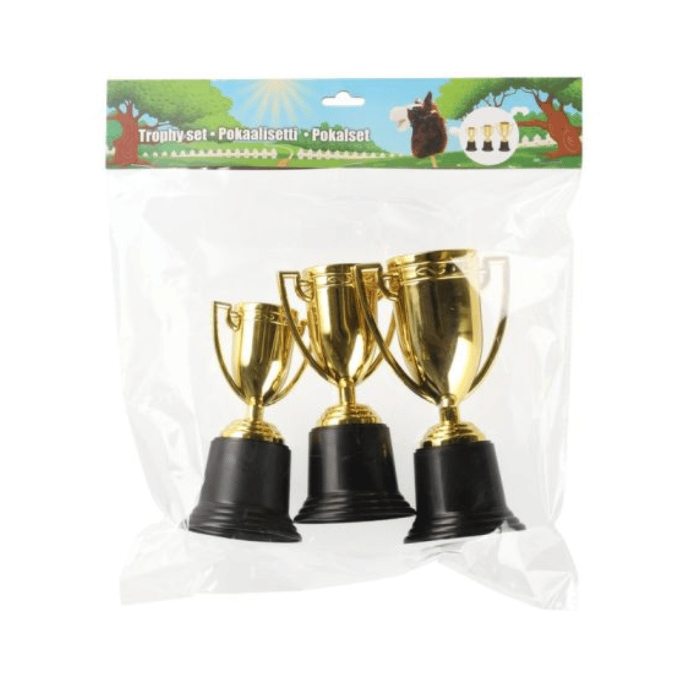 Keppihevosen pokaalisetti 3kpl. Pokaalisettissä on kpolme erikorkuista pokaalia: 13 cm, 14,50 cm ja 16 cm. Mieleinen lahja kaikille heppatytöille! Ikäsuositus: 3+ vuotta.