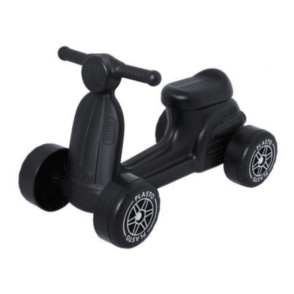 Plaston kotimainen klassikkomopo uudistuneella ulkonäöllä. Ulkonäön lisäksi uutta on hiljaiset pyörät. Skootterilla on hauskaa potkutella, ja se kehittää samalla koordinaatiota.