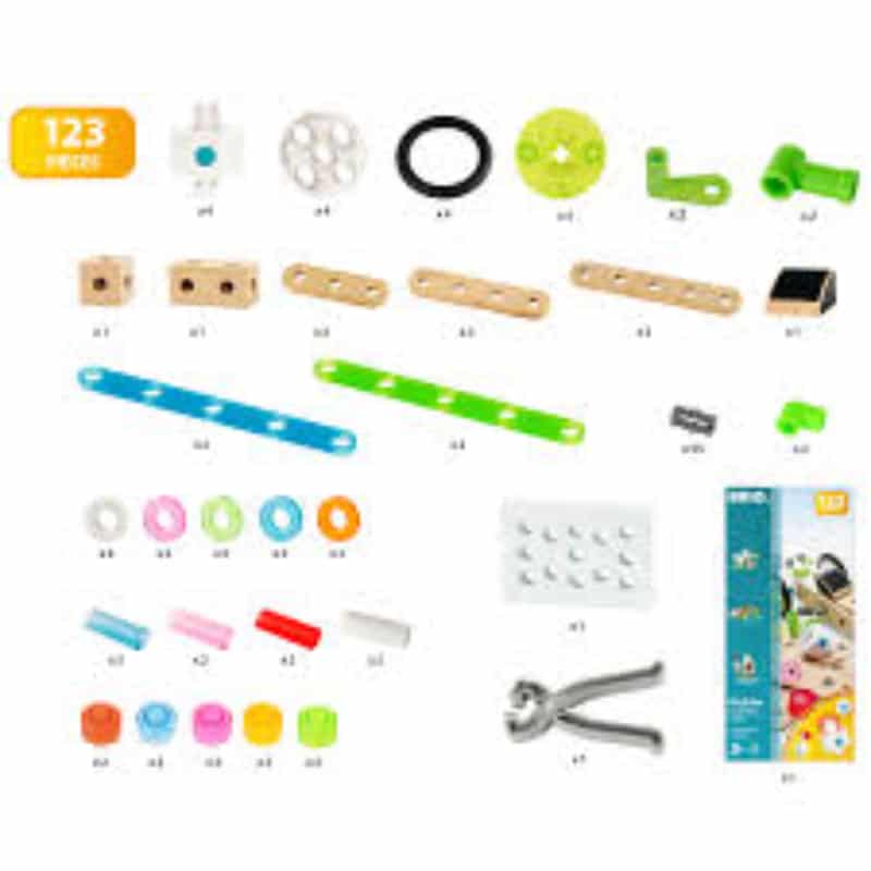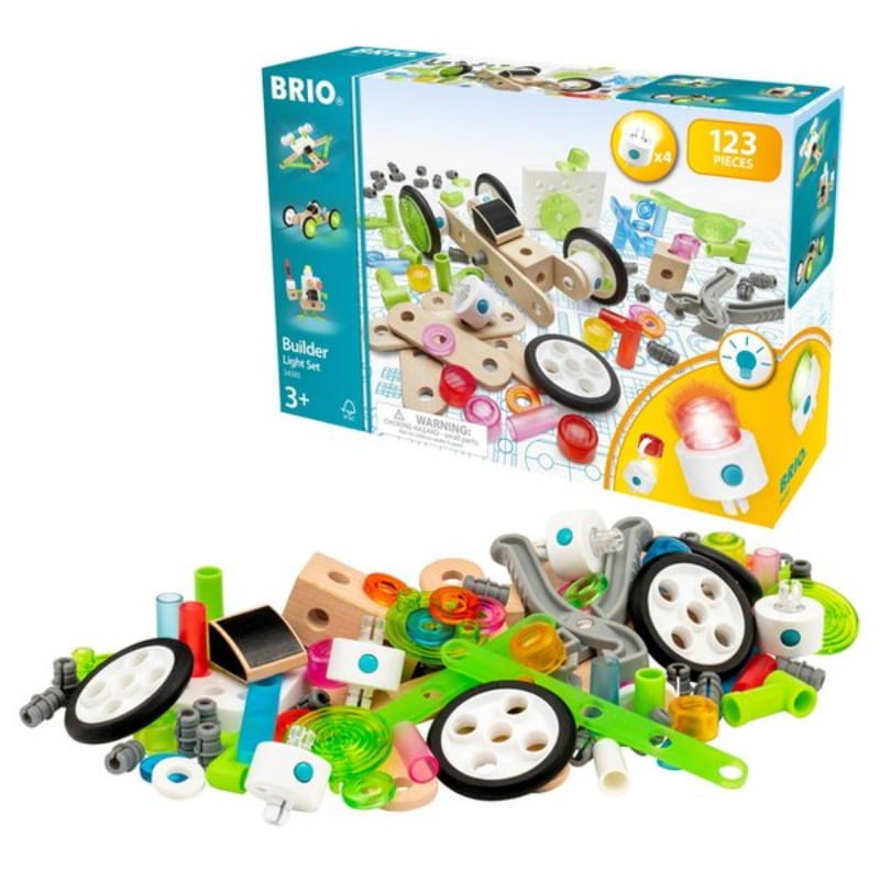 120-osainen BRIO Builder-rakennuslelusetti, helppokäyttöisiä työkaluja ja leikkimään innostava STEM-ohje. Kun BRIO Builder-luomukset valaistaan, leikki saa uuden käänteen. Tämän sarjan avulla voi rakentaa joka päivä omia leluja vailla rajoituksia. Kun lapsi rakentelee ja käyttää luovuuttaan, hän oppii samalla ratkaisemaan ongelmia. Kaikki osat sopivat yhteen BRIO Builder -järjestelmän kanssa, mikä tekee leikeistä entistä monipuolisempia.