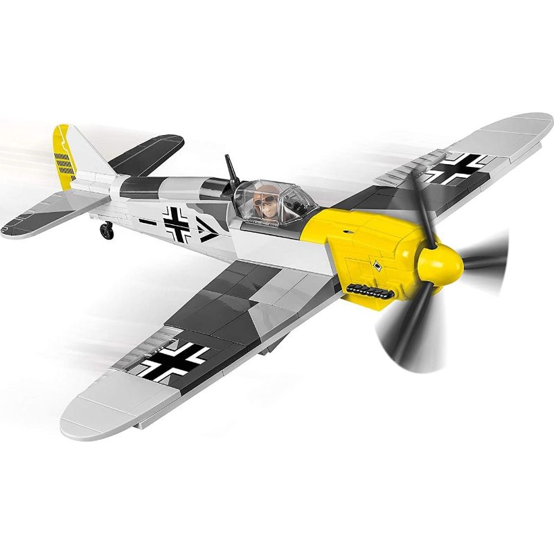 Messerschmitt Bf 109 tai ’Me 109’ oli saksalainen hävittäjäkone, joka oli Luftwaffen hävittäjävoimien selkäranka toisessa maailmansodassa. Se lensi Espanjan sisällissodan aikana (1939) ja oli käytössä sodan loppuun asti. Täysmetallisesta monokokkirakenteestaan, suljetusta katoksestaan ja sisäänvedettävästä laskutelineestään se oli yksi kehittynein hävittäjä tähän aikaan. Sen voimanlähde oli nestejäähdytteinen, käänteinen V12-ilma-moottori. Tämä tuote sisältää 278 osaa, yhden sotilaan ja helppolukuiset yksityiskohtaiset ohjeet. COBIn osat toimivat muiden brändien kanssa ja COBI -sarjojen laatu tulee yllättää sinut.