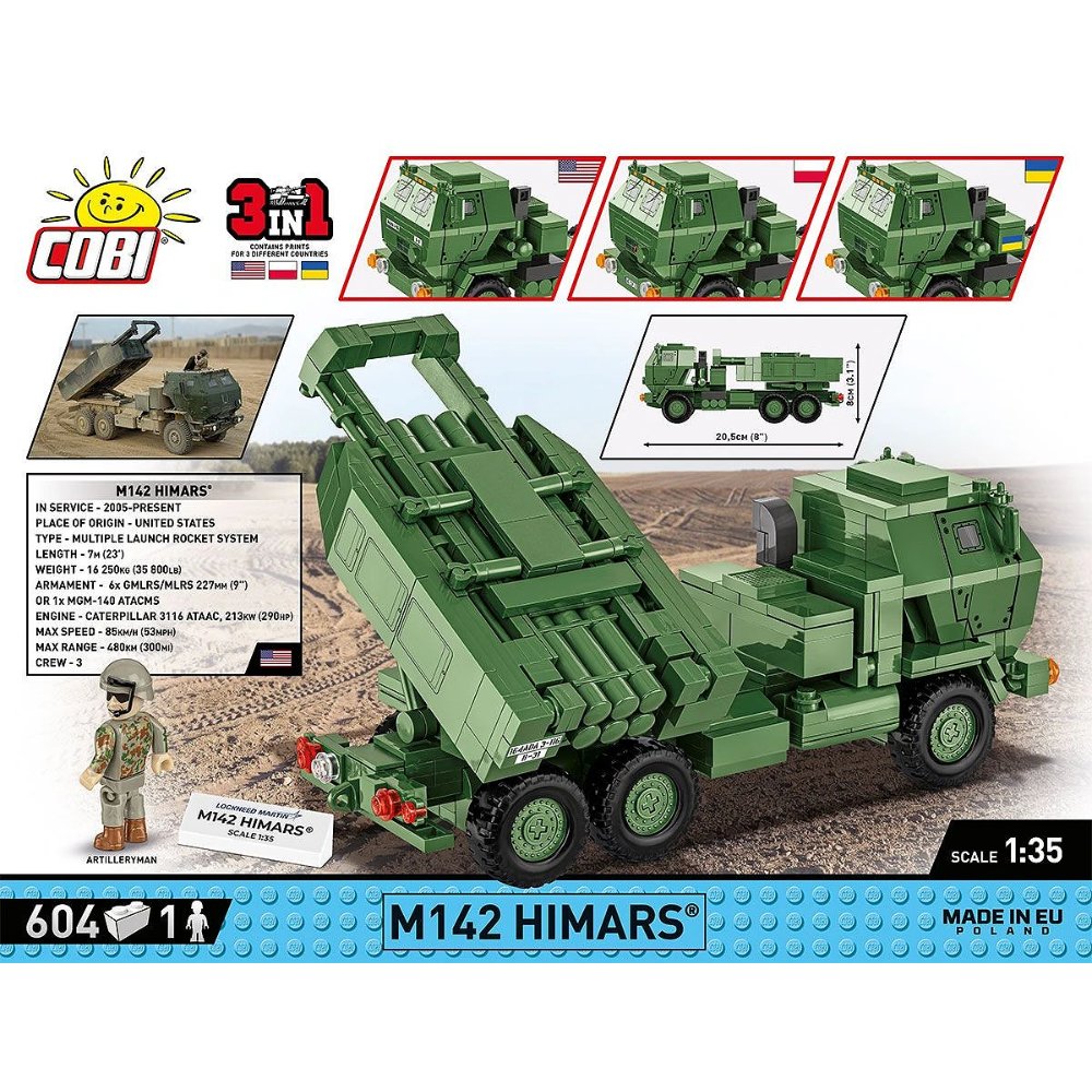 COBI M142 HIMARS -rakennussarja tuo ikonisen M142 HIMARS -raketinheittimen rakentelemaan palikka palikalta. Setissä on 604 laadukasta osaa, jotka muodostavat 1:35‑skaalaisen ajoneuvomallin, jossa on liikkuva raketinlavetti ja realistinen M1140-alusta.