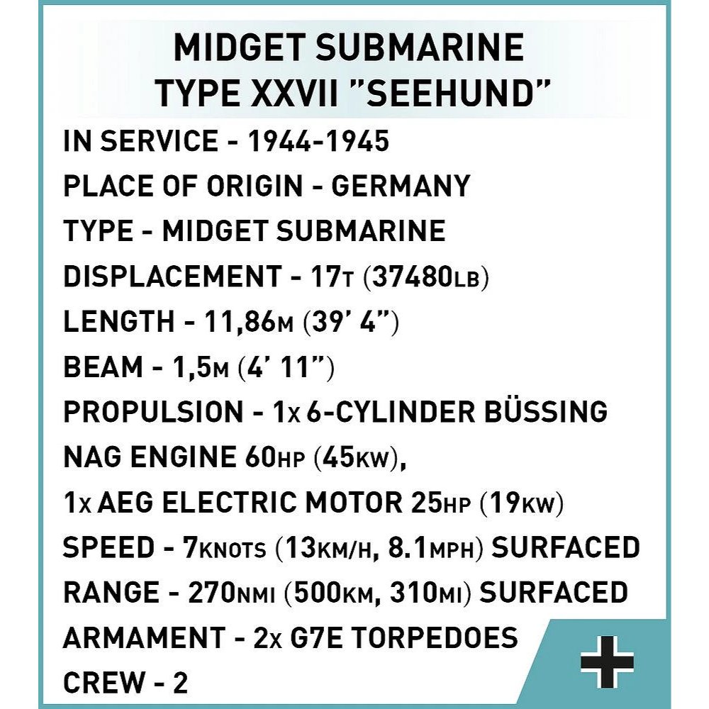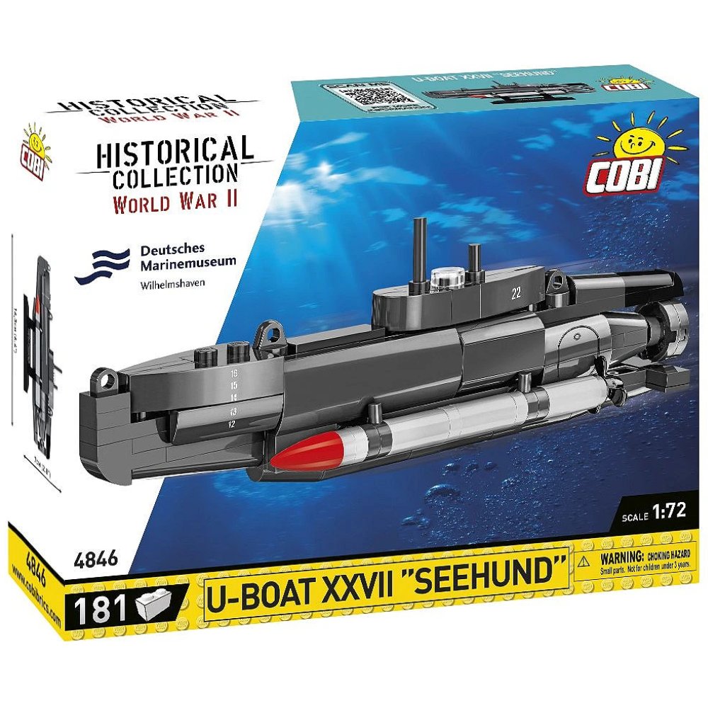 Tämä Cobi Historical Collection -sarjan U‑Boat XXVII “Seehund” -rakennussarja vie pienoismallien ystävän suoraan toisen maailmansodan historiaan.