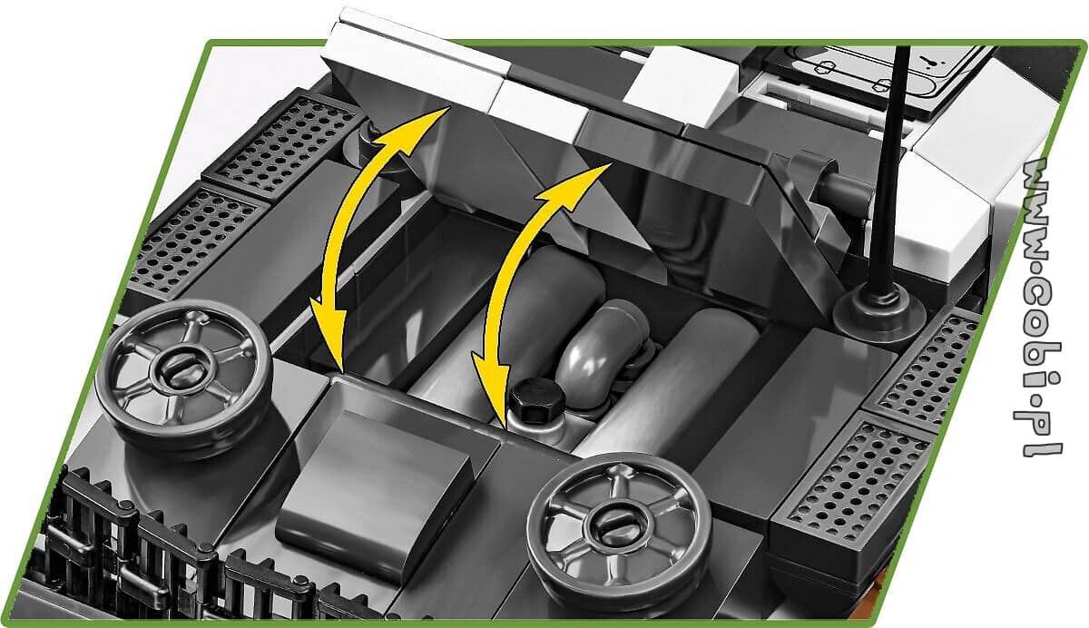 The StuG III and Flammpanzer block models were developed in a 1:35 scale suitable for the figures using over 500 elements. The model is approximately 21 cm long and has colors referring to winter activities. The model has a service hatch with a block engine. Thanks to the working caterpillar traction, you can move the model!